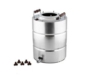 Куб выполнен из высококачественной пищевой нержавеющей стали марки AISI 304 (немагнитка). Толщина стенок не менее 1 мм, дна не менее 2 мм, крышки не менее 1,5 мм. Дно из пищевой нержавеющей стали AISI 430, обладающей ферромагнитными свойствами, что позволяет использовать куб на индукционной плите. Горло диаметром 12 см, силиконовая прокладка толщиной 4 мм, фланцевое соединение на 5-и барашках, что обеспечивает надежное крепление и не пропускает пар. Барашки капролоновые – не нагреваются, можно откручивать сразу после перегонки.Куб оснащен штуцером для цифрового термометра со щупом. Высокая точность измерений температуры внутри куба и минимальная погрешность в отличии от аналоговых биметаллических термометров, которые показывают температуру крышки или стенок куба (термометр в комплект не входит). Куб может использоваться без термометра - штуцер закрыт заглушкой.На крышке перегонного куба расположен предохранительный клапан - обеспечивает безопасность процесса перегонки, предотвращая возникновение избыточного давления.Куб может использоваться в качестве емкости для брожения, для этого необходимо докупить крышку для брожения (с отверстием под гидрозатвор).
